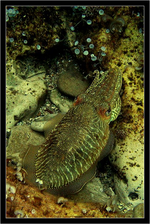 při šnorchlování na pobřeží ostrova jsem narazil na tři krasavice, bylo zajímavé sledovat jak mění barvu podle svého okolí