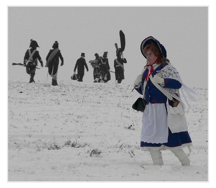 Momentka z roku 1805 z místa konání bitvy tří císařů. Nevím jakou roli tehdy tato francouzská dáma sehrála, nestihl jsem se ji ani zeptat, protože dříve než jsem se odhodlal, ocitl jsem se již pod palbou nepřátelských kulí:))
