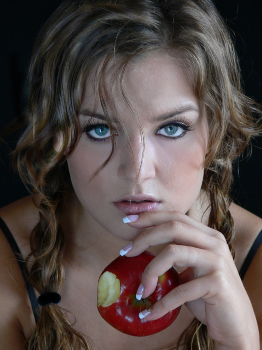 přijde mi to přiliš složité..nevim jeslti sledovat výraznou ruku a jablko nebo obličej, který se jeví měné ostrý. jinak modelka good
