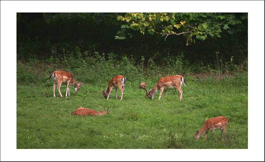 jo tahle je hezká, jen mi trošku vadí světlo, nešlo to lehce zesvětlit? a taky si možná mohl trošku čekat, pomalu se k ním blížit s prstem na spoušti, chybí mi tam ten moment, že se podívaj do objektivu. to je velká škoda...kdybych byl na tvém místě, prostě bych se k nim pomalinku šoulal...a prostě bych k nim šel co nejblíž by to šlo, a pokud už to nešlo, stejně bych se k nim plížil s tím že mě zpozorují...oni by to vyplašení unesli a ty bys měl hezkou fotku...asi tak, když snesou hrůzu z toho že je střílí myslivci, to pro ně musí být hrozný trauma, když utíkaj a z ničeho nic jim někdo odpráskne matku...nebo druha....tak myslím, že unesou i to, že uvidí nějakého človíčka...prostě se sbalí a za hoĎku tam budou zas;)...mno a ty by jsi měl super momentku...kdyžtak mi napiš na mail, jestli jsi je blejskl i v akci, nebo jsi se prostě odplížil, nebo jak to vůbec bylo. zdaaaaar. dave