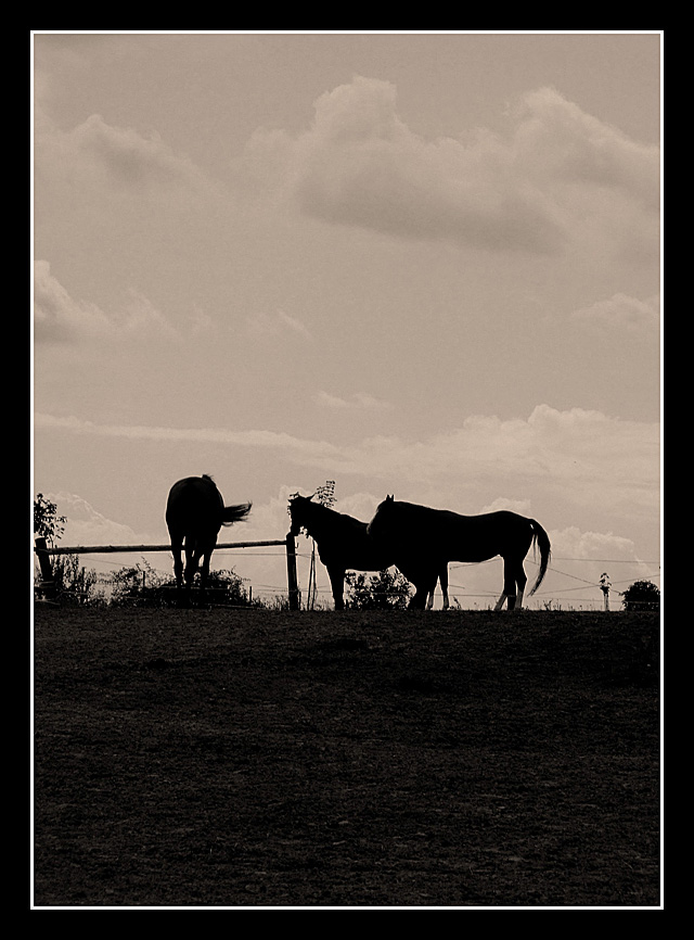 Je vidět, že koně máš ráda, teď je jen dobře "nakomponovat", místo bez keřů roztoucích do pupíků koně, nesnažit se za každou cenu kolorovat...nebo tak nějak. Hoj.