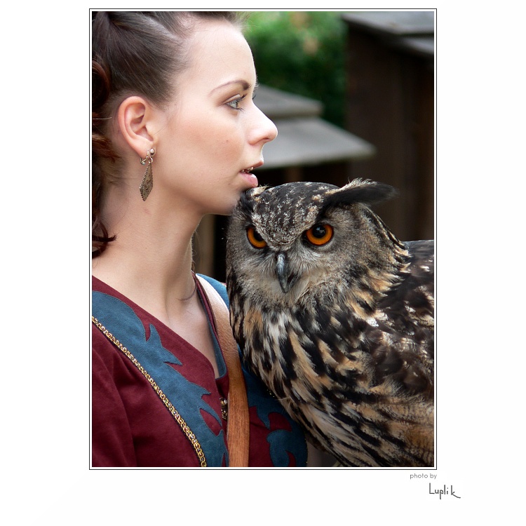 Pekná sova, i pani, čo ju v ruke nosí.