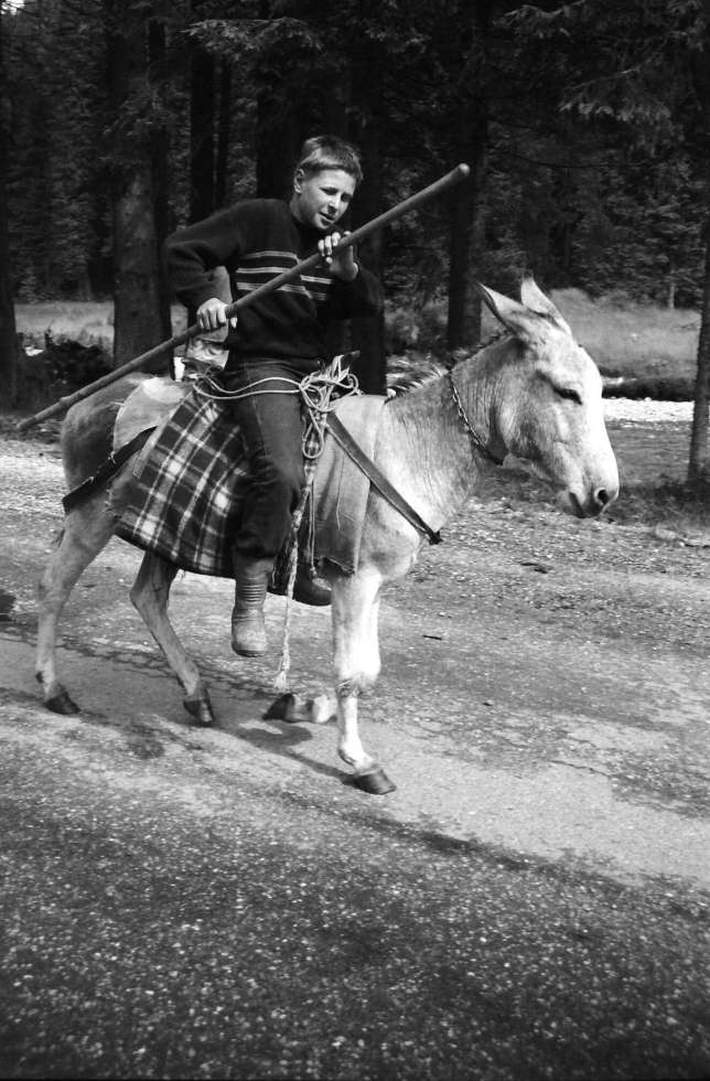 rumunsko...chlapec reze do oslika klackem a vesele se prohani po asfaltu