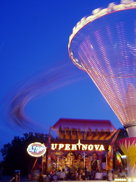 Stando, jinej úhel - bez toho stánku. Tys asi chtěl, aby tam byl, ale ono to nevyzní, jinými slovy a podle mně dynamičnost fotky kolotoče zbržďuje okolí.