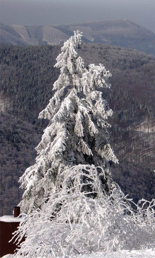 Dobrý motiv, ale kompozičně neučesané - chápu snahu o zachycení stromu i keře, ale pořád nám tam leze ten komín nebo co to je... snad jedině volit takový úhel, kdy nebude vidět... do té ledové krásy mi to moc nesedí.