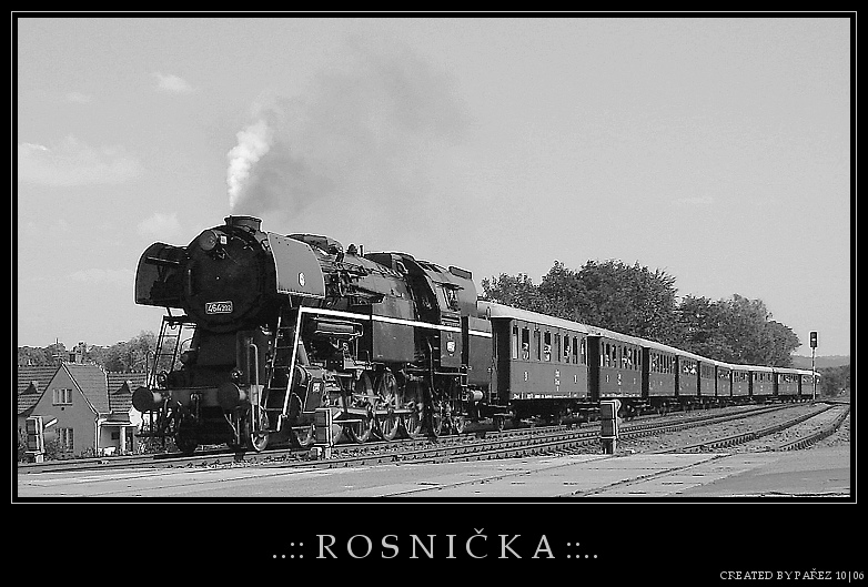 3íleným způsobem přeostřený, nevýrazný kouř, dům vlevo, panely dole, "zlomenej" vlak (za to nemůžeš ani to není chybně, ale působí to na mě rušivě), prazdnej pravej horní roh, možná bych víc řezal zhora, asi bych to nernul do BW, ale třeba jen utlimil kontrast. Nevím neviděšl sem originál....