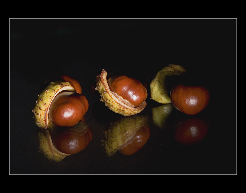 Černý rámeček ubírá barvy kaštánkům.