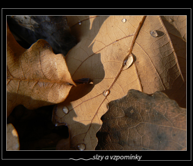 ...verim, ze ti ty pocity nevydrzi dlouho...listecky jsou nadherne, osobne bych bral vetsi hloubku pole, at jsou v ni i ti listky kolem, ale mozna to je na snimku to zajimave..libi se mi