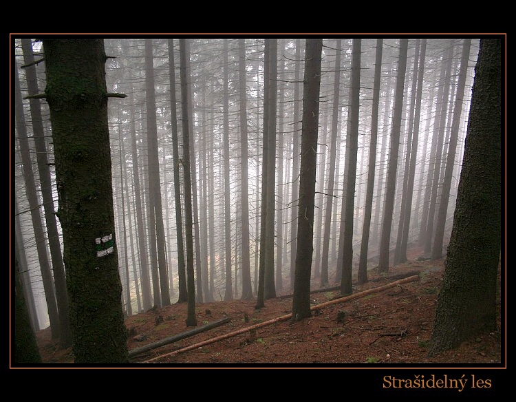 pěkné foto... ale strašidelný??? Vidím tam turistickou značku, to je civilizace, nebál bych se :) To nic nemění ale na fotce :)