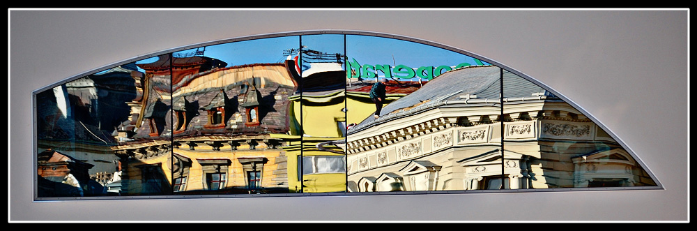 Luneta, že by Mucha dostal kopřivku. Proč je to proboha křivé zarámované? Jediné plus vidím v tom chlápkovi na střeše!