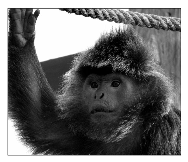 Bezva výraz (taky tyhle opičky ráda fotím...), jen škoda ořezu prstů...