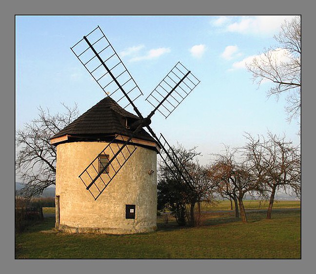 Ten Pavlíček je ale šťoura, viď:))) Mě teda trošičku nesedí šedivý rámeček. Neřeknu ale přesně, jaký bych ho udělala já (nejspíš tmavě hnědý). Ta stavba je fakt nádherná, taky bych fotila, a zřejmě i s takovou kompozicí (jenom ty větvičky vlevo bych tam chtěla asi mít všechny).
