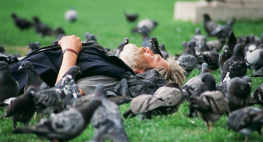 V jedno teplé letné popoludnie pred National Gallery London, Trafalgar Square.