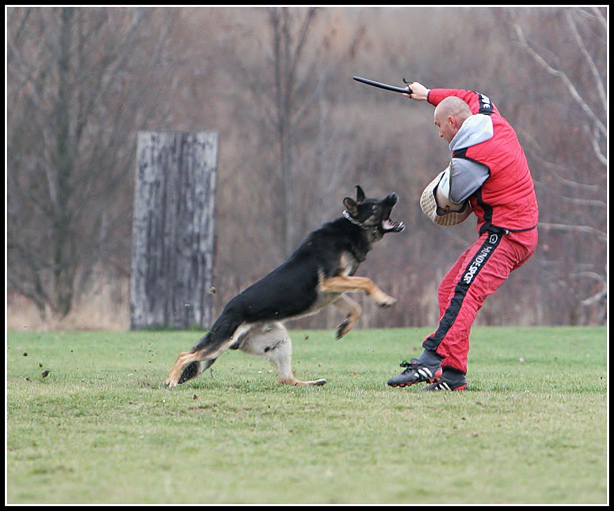 (jen jednou jsem si to ze zvědavosti vyzkoušela se známou fenkou: přestože jsem byla připravená, zapřená a kdo ví, co ještě, dostala mě při náskoku na záda) Mají pěknou sílu... :-)