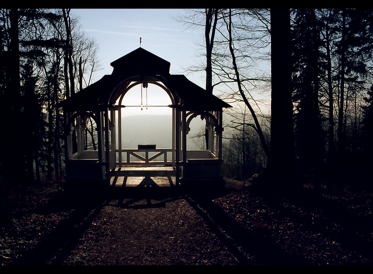 pekne barvy i svetlo,ale vzala bych ten altan trochu vic zblizka,okolo je zbytecne moc stromu