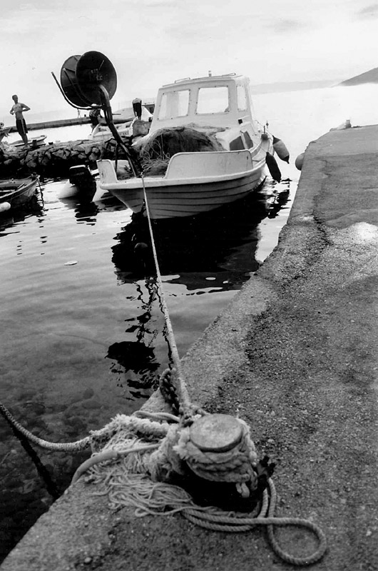 Rybáři ve Staré Bašce. Skenováno z kinofilmu. Rozostřené lano není podle mě na závadu.