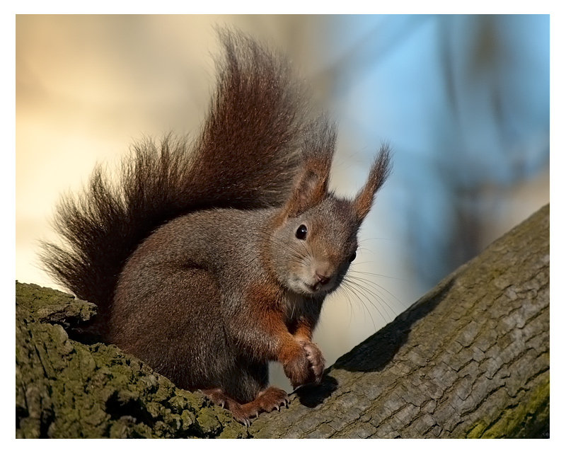 Původně jsem šel na brhlíky, ale jelikož je taková divná zima tak jsem žádného nenašel jen veverku.