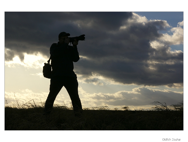 K fotce: fotka líbí, hodnotil bych ji tak za 5, moc se mi nelíbí ty tmavé mraky, které téměř splývají se siluetou fotografa... Podle mě by to bylo lepší buď bez mraků a nebo Jiný postoj, aby fotograf více vynikl...