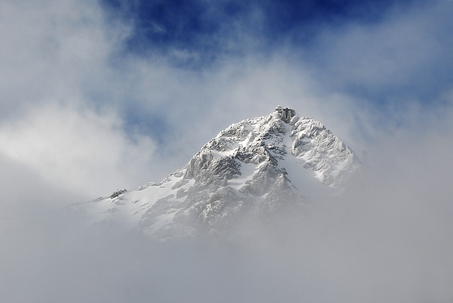 Hore vidno najvyššie položenú meteorologickú stanicu a hvezdáreň na Slovensku.
