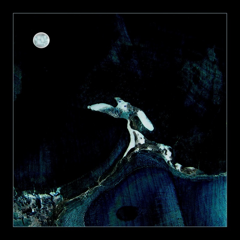 jedná se o upravené foto pařezu s přidělaným měsícem a očičkama pejska