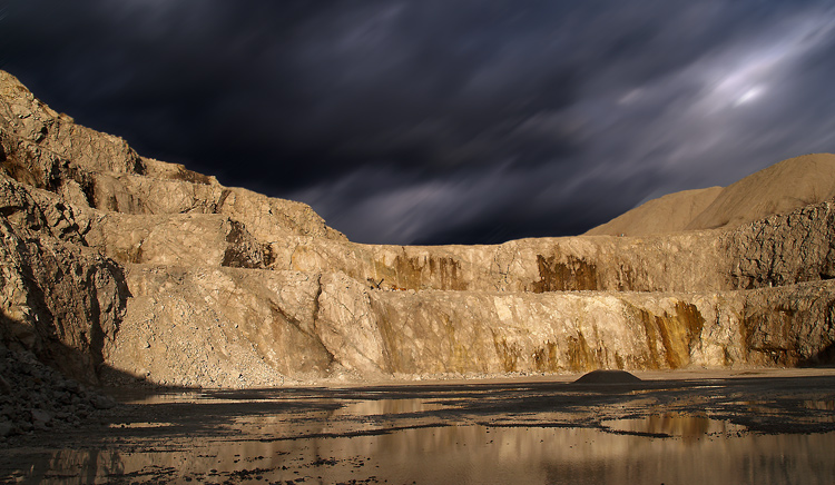 Ha, milánkové tady si na vás totálně pošmáknu! Obloha vznikla čistě bodovou expzicí na bílý vápenec, jediný co dělal PS je pohybové rozmáznutí oblohy. Ostrá hrana vznikla čistě kontrastem v JPEGu. A mimochodem etáže jsou naprosto vodorovně, kdo nevěří ať si vezme pravítko;)