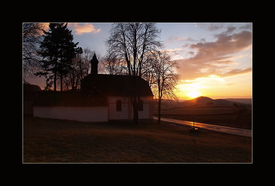 fotka je hezká, já bych těch filtrů přidal, abych mohl kostelík zesvětlit.Jinak opravdu hezké zapadání