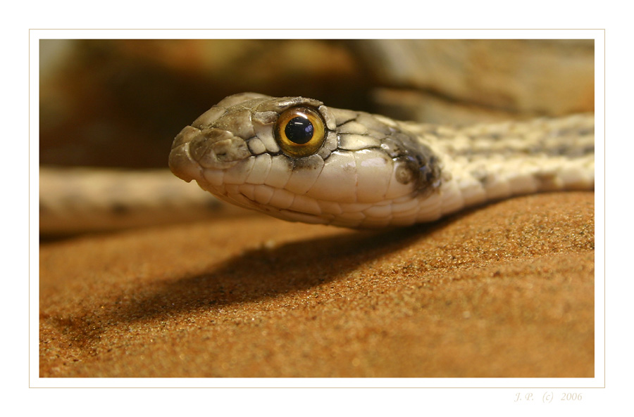 Šírohlavec arabský-Malpolon moilensis.Prý se mu také říká falešná kobra.