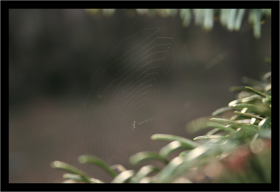 promiň, věřím, žes asi dlouho přemýšlel, jak tu pavučinu odfotit, ale zkus se podívat okem nezaujatého diváka - na té fotce nic není. Hlavní objekt skoro není vidět, barvy skoro žádné, ostrost žádná...