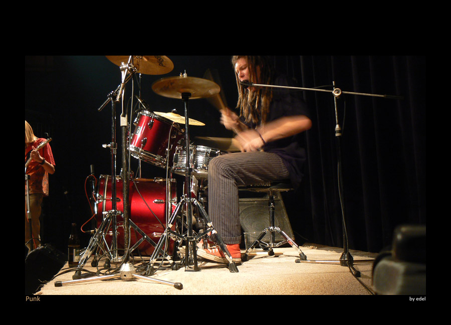 Ahoj, máš podivnou kompozici, uřízlá hlava bubeníka, je zbytečně tlačenej na střed, za ním je prázdný prostor, přepůlený kytarista vlevo není také ideální.