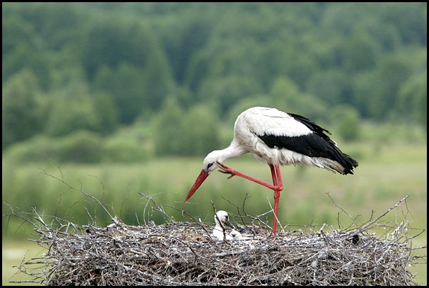 Když už tady píšu k fotkám čápů ty svoje moudra, tak jsem se rozhodl tentokrát pro tenhle snímek, který jsem fotil před čtrnácti dny v Bieloviěži. Nebylo jednoduché se dostat na úroveň hnízda, ale přeci jen se to povedlo bez zranění. (Dokonce přežil i foťák) Umístil jsem foťák proti hnízdu a exponoval jsem přes vysílačku.