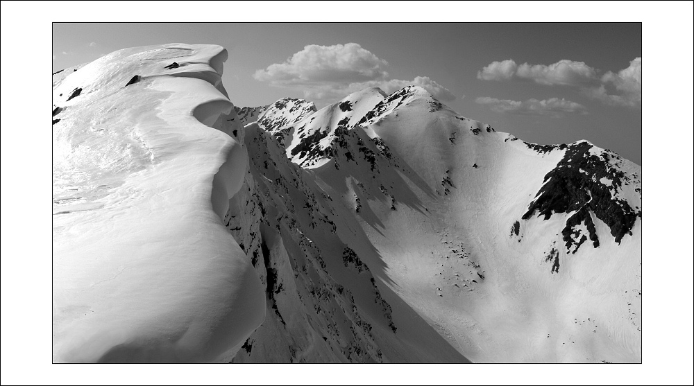 Obrovské snehové preveje na hrebeni medzi Plačlivým a Smutným sedlom.