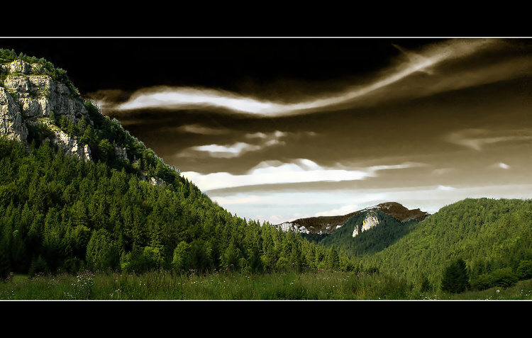 nebýt zřetelné oddělení kopce od oblohy a úprava každého zvlášť, bylo by to zajímavé