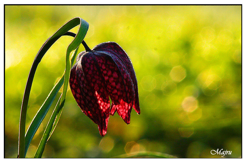 řebčík kostkovaný (Fritillaria meleagris) po slovensky veru neviem :-).....celkem příjemně vyfocený