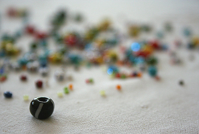 Chtělo by to větší hloubku ostrosti, aby pozadí nebylo úplně rozostřené, protože v tomto případě tvoří nedílnou součást snímku, která doplňuje ústřední motiv...Jako hlavní bych volila barevně asi výraznější korálek a krapet lepší světlo na něm by neškodilo...nápad se mi ale líbí...