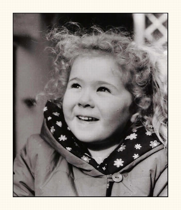 Skoda toho ramceka, fotka vyzera staro, co ale vobec nie je na skodu a tak je s ramcekom v kontraste. Fotku si mala stiahnut do CB po scanovani, nemala by si tam tych farebnych duchov. Pekny vyraz. 5++