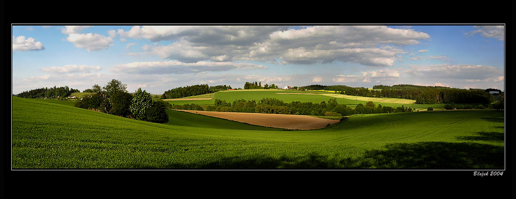 Opět něco z Vysočiny - krajina od Bystřice nad Pernštejnem směrem na Vrtěžíř (a zase takové malé cvičení na skládání fotografií - tentokrát ze tří kousků).