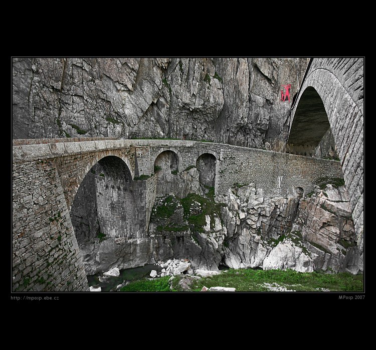 Teufelsbrücke, soutěska Schölenenschlucht, Švýcarsko
