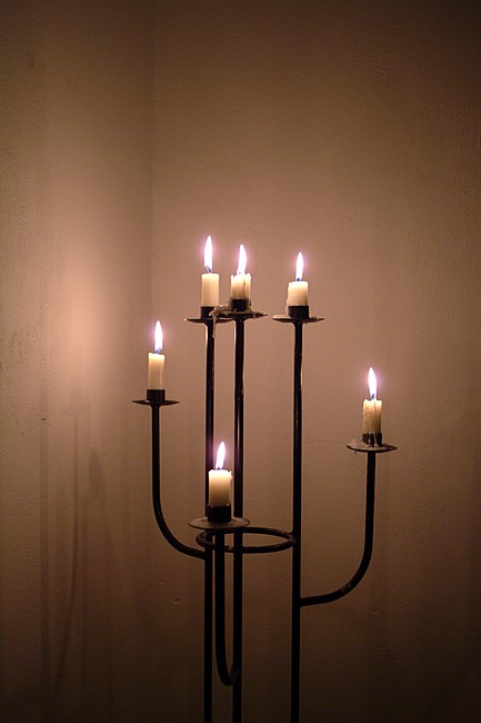 Nápad dobrý, trochu bych to ořízl, ale fotil bych to asi opravdu radši z jiného úhlu a svícen bych neumisťoval do středu a do rohu, ale k jedné straně a na druhé stín a to celé na rovné stěně. Nebo ještě jedna možnost centricky prímo do rohu a udělat to úplně středově. Takhle mi ta kompozice nesedí.