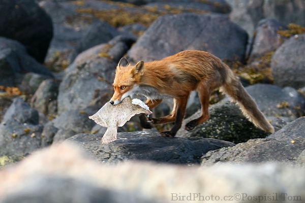 Takové mám rád, skvělý jsou i ty nohy od lišky, jak poskakuje, líbí se mi i to pěkně rozmazané skalisko v popředí. Škoda, že není fotka větší.