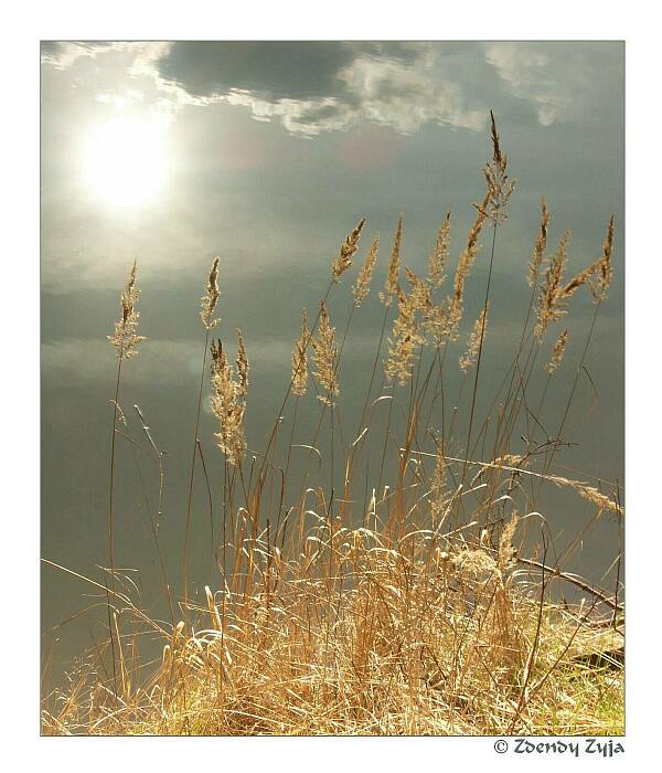 Opravdu dobře zvládnuté.Kupodivu se mi to více líbí s těmi zlomenými stébly,než když jsem si je zakryl.Jen ten mrak nahoře mi maličko vadí,jak vylézá ze snímku,ale patří tam.A reflexy jsou celkem nenápadné.