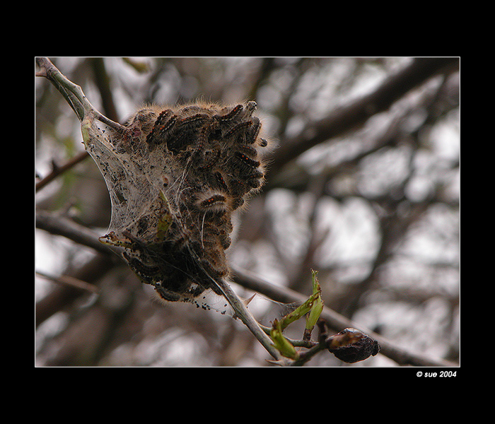 Zahradkari by sa tomu nepotesili - take hniezda zvyknu odstrihnut aj s vetvickou a spalit. My ostatni ich mozeme obdivovat, ale treba byt opatrny na chlpky tychto husenic, ktore mozu velmi neprijemne drazdit pokozku.