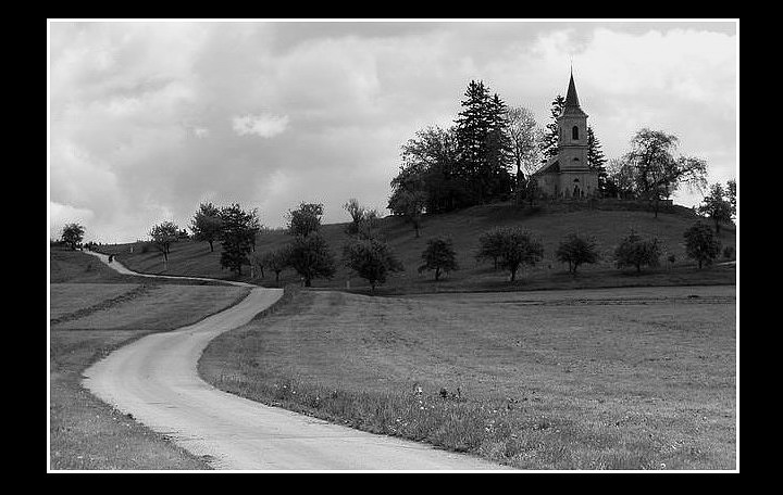 Jsou tam trochu vidět kontury po zmenšení okolo stromů na horizontu a kostela. Kompozičně to není špatné, ale horní polovina mi přijde až nepřirozeně tmavá, fotil jsi to s přechoďákem? Jinak nevím, čím to je.