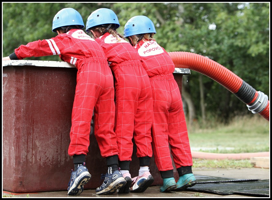 I na špičky musely, aby nasály vodu z kádě savicí do hasičské stříkačky.