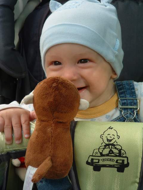 Fotka je milá, ale oči nejsou ostré, plyšák zakrývá část obličeje, mnoho rušivých prvků, možný by pomohl převod do černobíla.