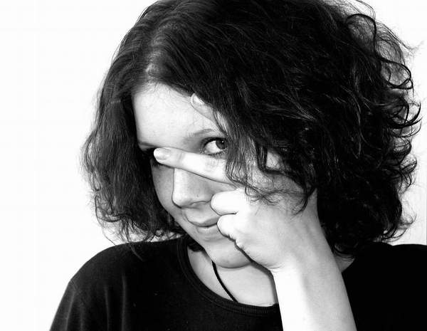 prst končící v oku..... špatné světlo(ostré stíny ruky)... bílé fleky na ruce...