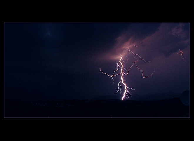 Pěkně probarvené mraky v okolí blesku.Trpělivost se vyplácí.