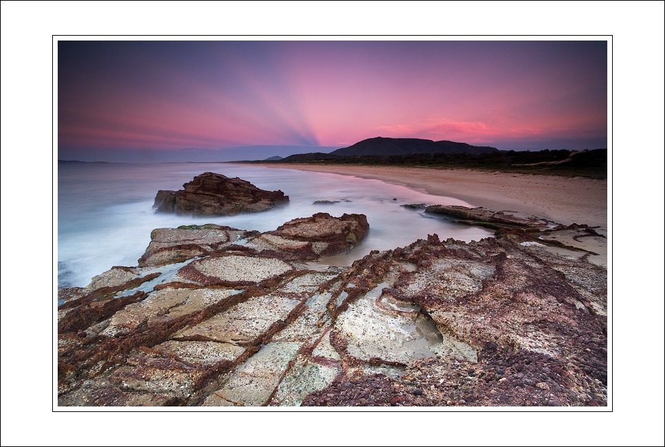 Austrálie, východní pobřeží, kde vznikly na písečné pláži takováhle železitá plata. V kombinaci s večerním světlem, úžasnou září a příbojem vznikla poměrně příjemně fotoenická scenérie..Všem příjemný večer..