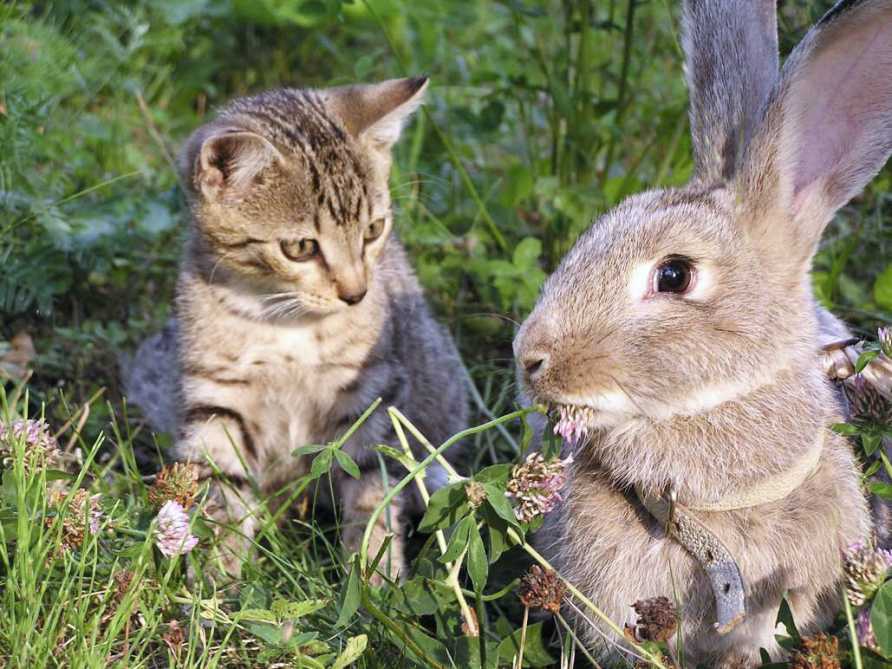 Kocourek se dobře diví, proč má králík obojek! :-)) 4++