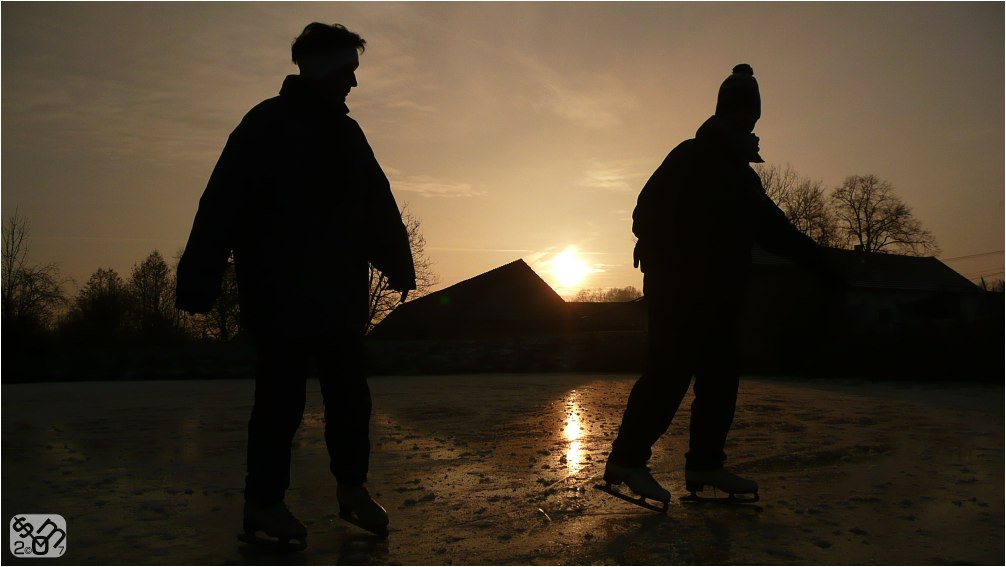 odpolední brusleni na rybníku při západu