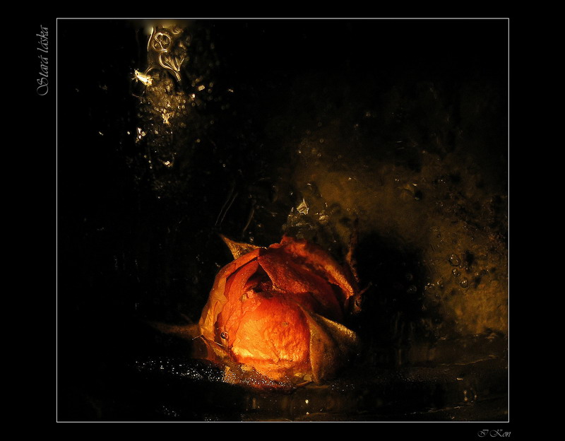 Přemrzlý kvítek, který jsem nechal zamrnout v ledu plus nejake graf.upravy...